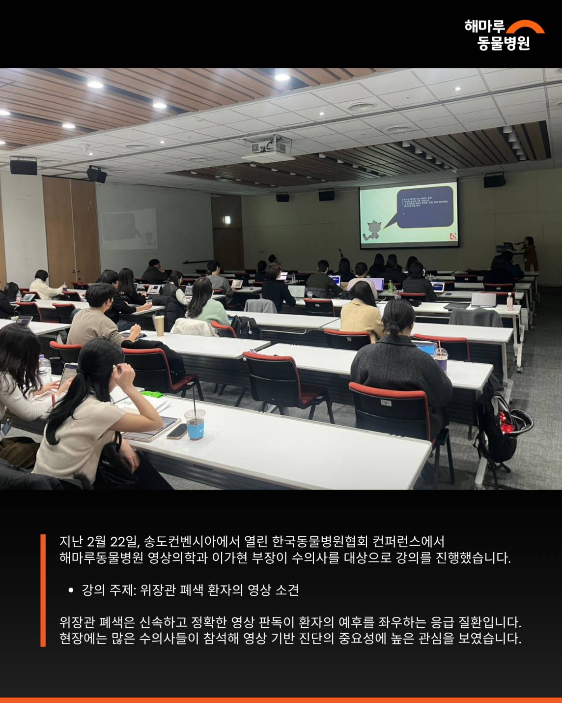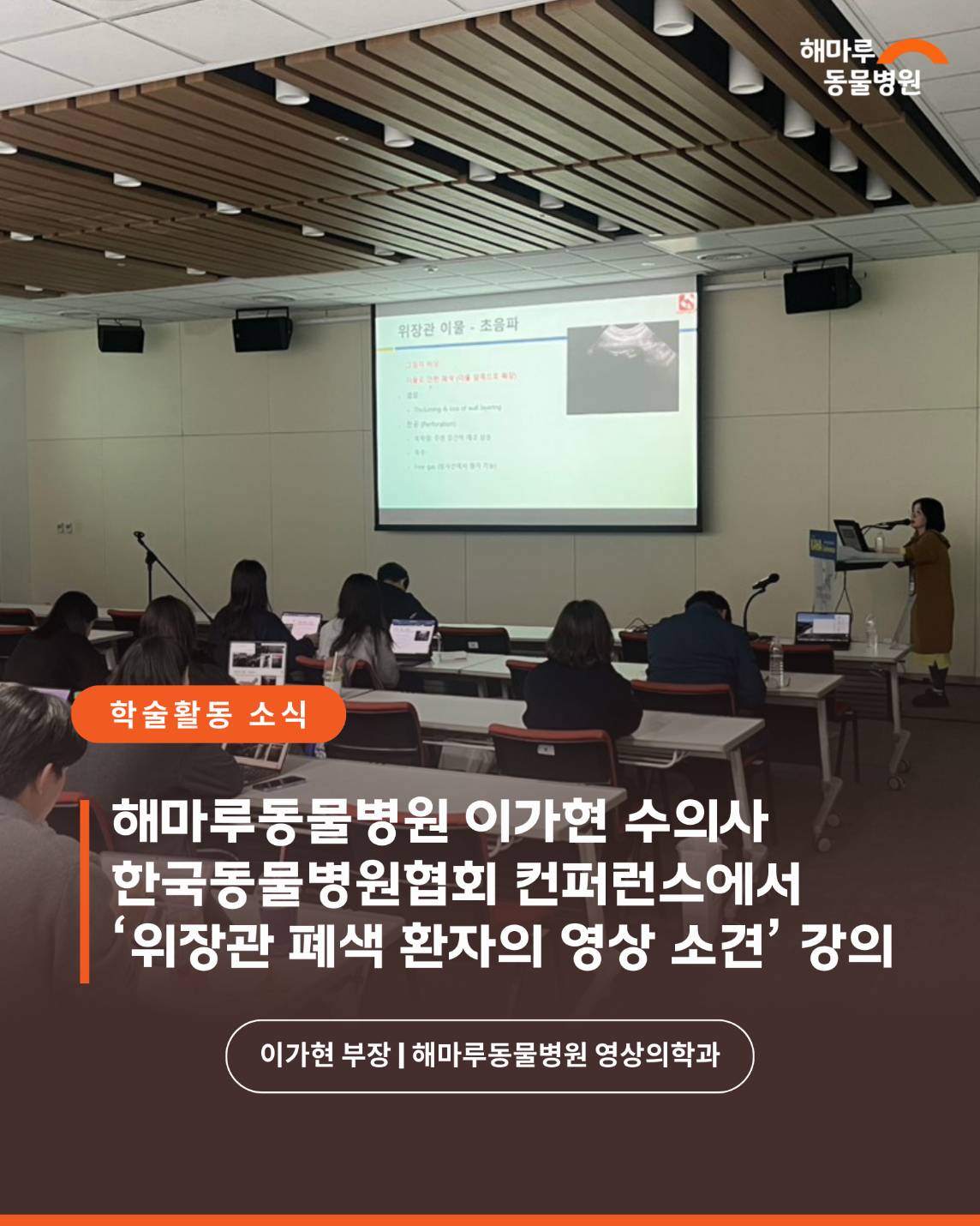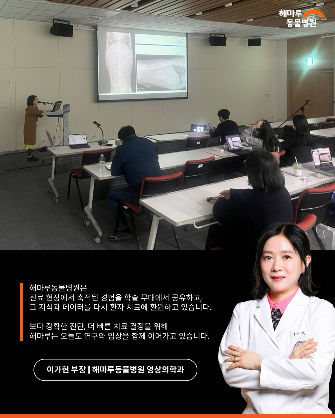 해마루동물병원 영상의학과 이가현 부장이 수의사를 대상으로 강의를 진행했습니다.